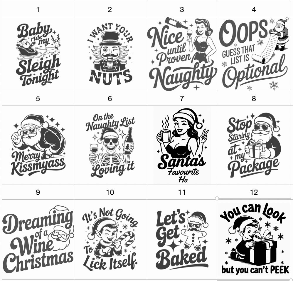 Our Cheeky Christmas Charcuterie Boards are bringing the naughty list to the snack table. Designed with playful, slightly scandalous holiday humor, these boards are perfect for adult parties, white elephant gifts, or anyone who prefers their Christmas with a wink.