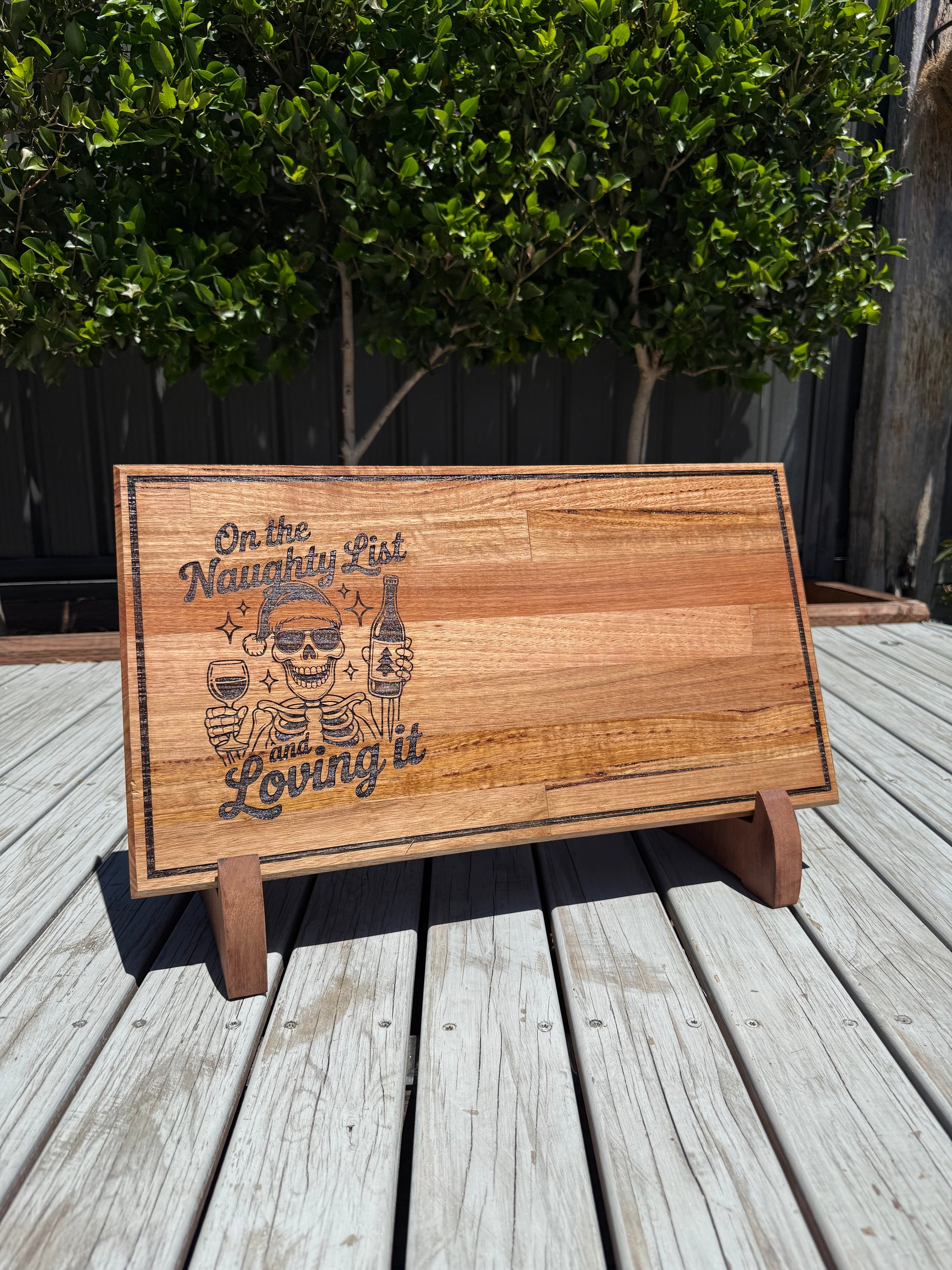 Available in three different sizes, they’re ready for anything from cozy cocoa nights to full-blown festive feasts. Each board is crafted with care and sealed with a food-safe finish, so you can serve up your favorite meats, cheeses, and treats without worry.